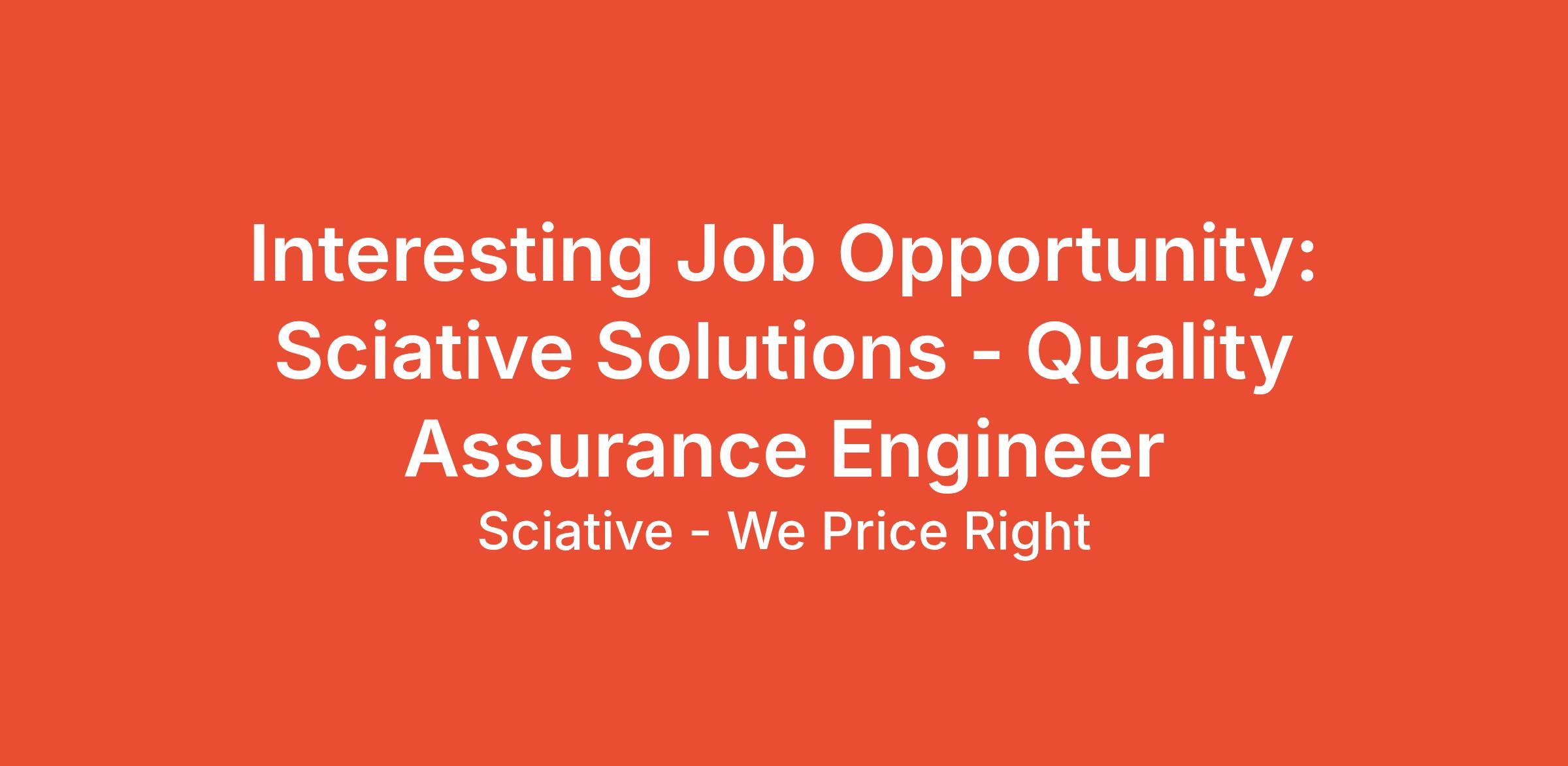 Interesting Job Opportunity: Sciative Solutions - Quality Assurance Engineer