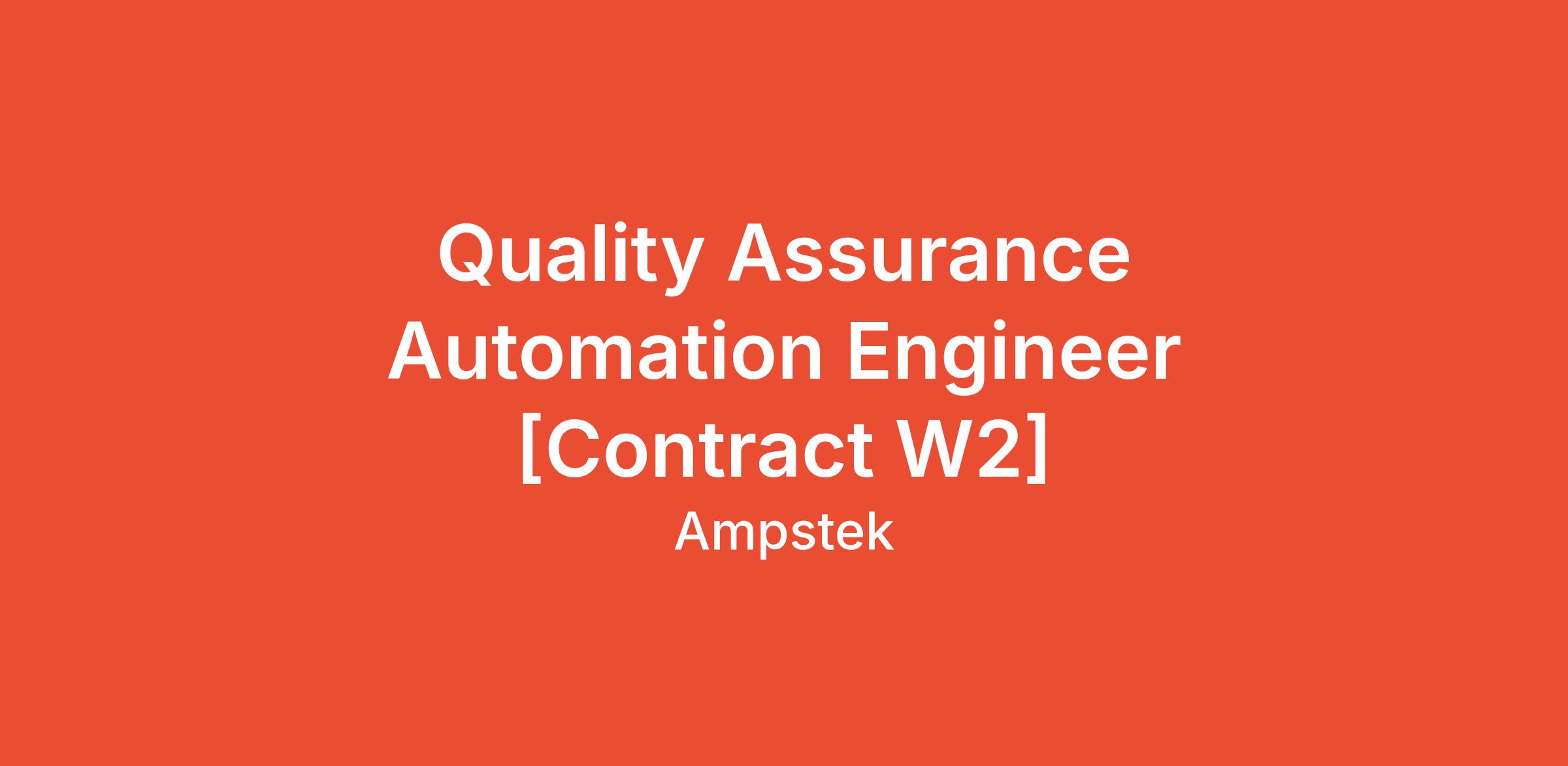 Quality Assurance Automation Engineer [Contract W2]
