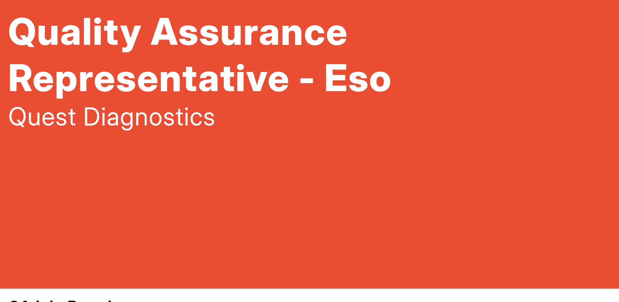 Quality Assurance Representative - Eso - Cleveland, OH - Monday - Friday 8:00AM-5:00PM